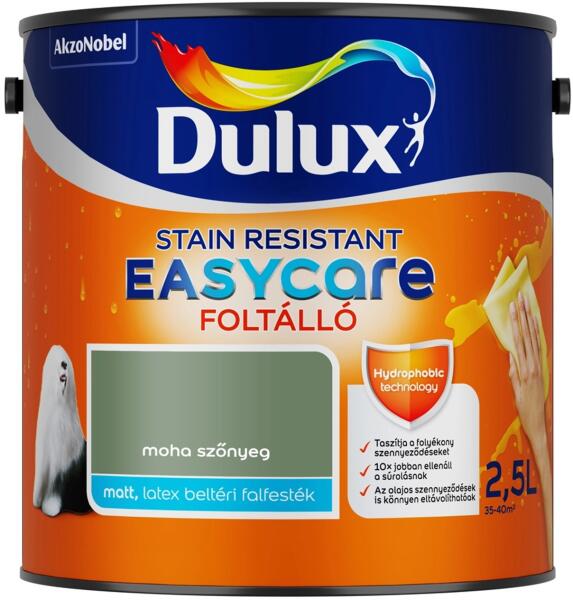 DZ Easycare Moha Szőnyeg 2,5 l. Forradalmi víztaszító tulajdonságú beltéri falfesték. A festék egyedülálló összetételének köszönhetően a falról lepereg a víz és a legtöbb folyékony szennyeződés, amelyek így nem hatolnak mélyen a bevonatba. Rendkívül ellenálló felületet hoz létre, amelyről gyerekjáték a kosz eltávolítása.