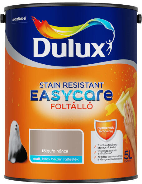 Foltálló és víztaszító: A Dulux EasyCare az első olyan beltéri színes falfesték, amely forradalmi víztaszító tulajdonságokkal rendelkezik. A festék egyedülálló összetételének köszönhetően a falról lepereg a víz és a legtöbb folyékony szennyeződés. Így nem szívódnak mélyen a bevonatba, és könnyen eltávolíthatók. Ha otthon gyerekek vagy háziállatok vannak, ez különösen hasznos lehet