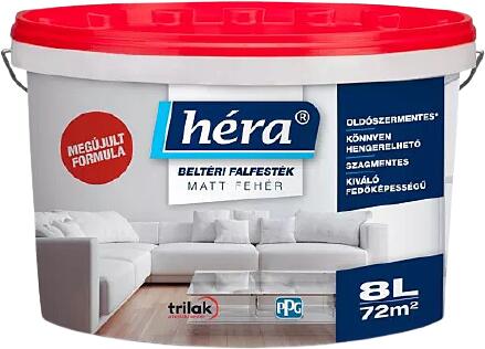 Héra Beltéri Falfesték Matt Fehér Kiváló fedőképességű, extra fehér, matt belső falfesték. Hozzáadott oldószert nem tartalmaz. - Vakolt, beton, gipszkarton és glettelt új építésű, belső falfelületek festésére keresel megoldást?- Régi, esetleg szennyezett, elhanyagolt falfelületek frissítését tervezed?A Héra belső falfesték amellett, hogy kiváló fedőképességű, matt, extra fehér, egyenletes struktúrájú felület kialakítására képes . Aquakolor színezőpaszta és festék hozzáadásával igény szerint színezhető.
