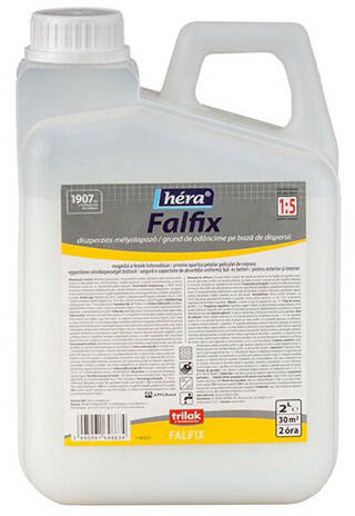 Az alkalmazás feltételei: Az alapfelület előkészítése:Az alapozandó felület legyen száraz, hordképes. A porló, leváló részeket el kell távolítani és az adott alapfelületnek megfelelően kijavítani. Új, vakolt vagy beton felületek:HÉRA falfix és víz 1:5 arányú keverékével alapozzunk. Az alapozás után vízpróbával ellenőrizzük a felület szívóképességét, ha szükséges alapozzunk másodszor is. Új, gipsz tartalmú glettel előkészített vagy gipszkarton felületek:A gipsz tartalmú glettanyagok és a gipszkarton lemezek szívóképessége nagymértékben eltérő lehet. A szívóképesség függ a glettanyagok vastagságátóL, összetételétőL, a gipszkarton lapok típusától. Nem lehet minden típusra érvényes megoldást adni, a kivitelezés során az adott felület ismeretében kell a HÉRA falfix hígítását beállítani. Ügyeljünk arra, hogy az alapozás után a felület ne legyen üvegesen fényes, valamint az alapozás sikerességét ellenőrizzük vízpróbával. Régi, már festett felületek:Portalanítsuk a felületet, majd a régi bevonat szívóképességének megfelelő hígítással alapozzunk HÉRA falfix alapozóval. A krétásodott felület lekötésére elegendő az 1:5 arányú hígítás. Megjegyzés: a javasolt rétegfelépítések minden esetben a legjobb tudásunk szerinti ajánlások, és nem mentesítik a felhasználót az adott festendő felület vizsgálatától. A feldolgozás hőmérséklete:Ne alkalmazzuk a terméket +5°C alatti hőmérsékleten, amin a levegő, az anyag és az alapfelület hőmérsékletére egyaránt értendő. Anyagelőkészítés:A HÉRA falfix mélyalapozót minden esetben vízzel kell hígítani. A hígítási arány 1:3-tól akár 1:5-ig terjedhet az adott felület szívóképességének függvényében.