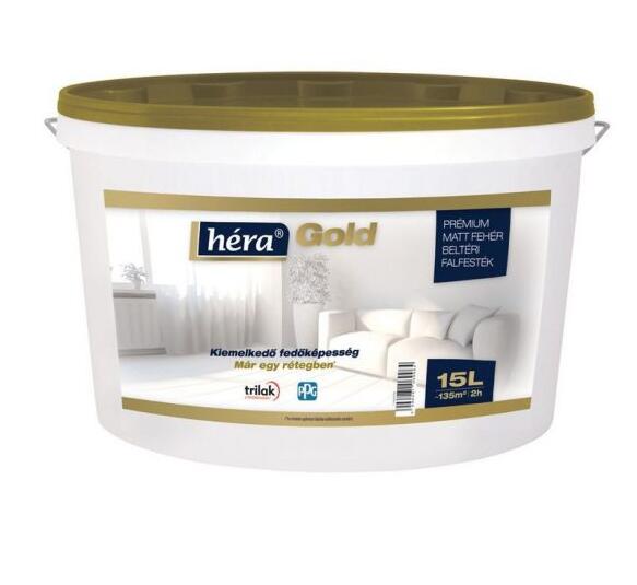 Alkalmazási terület Vakolt, meszelt vagy bármilyen korábban már más diszperziós festékkel festett beltéri falfelületre, gipszkarton felületre, fűrészporos tapétára felületi előkészítés után közvetlenül felvihető. Felület-előkészítés A festendő felület legyen száraz, hordképes, egyenletes szívóképességű, megfelelően alapozott. A porló, leváló részeket el kell távolítani és az adott alapfelületnek megfelelően kijavítani. CMC-alapú glettanyagok használata nem javasolt. Új, vakolt vagy beton illetve; gipsz tartalmú glettel előkészített vagy gipszkarton felületek:  finoman csiszolja meg a felületet csiszolópapírral majd tisztítsa meg a portól. Alapozáshoz és a felület szívóképességének kiegyenlítéséhez Héra Falfix diszperziós mélyalapozó használatát javasoljuk a termékismertetőben leírt módon. Régi, már festett felületek:  finoman csiszolja meg a felületet csiszolópapírral majd tisztítsa meg a portól. Alapozáshoz és a felület szívóképességének kiegyenlítéséhez Héra Falfix diszperziós mélyalapozó használatát javasoljuk a termékismertetőben leírt módon. Penésszel fertőzött felületek:  a penésztelepeket nedves tisztítással (pl. lekeféléssel vagy lekaparással) el kell távolítani, majd Héra penészgátló lemosóoldattal kell kezelni a termékismertetőben leírt módon. Penésszel fertőzött falfelületek esetén a Héra Prémium penészgátló adalék használható a termékismertetőben leírt módon. Csak akkor alkalmazzon a továbbiakban Héra Gold beltéri falfestéket, ha a fertőzött felületet rendszeresen fertőtlenítjük. Nikotin-, víz-, korom- vagy zsírfoltos felületek:  a felületet tisztítószeres (folyékony mosogatószeres) vízzel le kell mosni és teljes száradás után le kell kefélni. Ezután Héra folttakaró alapozót kell felhordani. Ebből a felület állapotától függően második réteg felhordására is szükség lehet. A befejező réteg a Héra Gold beltéri falfesték legyen. FelhasználásAnyagelőkészítés, hígítás:  a terméket a feldolgozás előtt alaposan keverjük fel, illetve bizonyos időközönként festés közben is. Héra beltéri falfesték felhasználásra kész állapotban kerül forgalomba, hígítása nem szükséges. Amennyiben mégis erre van szükség, az első réteghez maximum 5%. Felhordás módja:  ecsettel, hengerrel vagy megfelelő szóróberendezéssel. Szóráshoz a szórási paramétereket az adott géptípushoz kell beállítani. Airless szóráshoz az irányadó beállítások a következők:fúvóka:0,018" - 0,026"nyomás:150 - 180 barfúvókaszög:50°hígítás:maximum 2% vízzel Színezhetőség:  Héra színezőpasztával pasztell árnyalatokra színezhető. Gépi színkeveréshez termékeket a Beltéri falfestés Egyedi színkeverésű falfestékek alkategóriában talál. Megjegyzés: a javasolt rétegfelépítések minden esetben a legjobb tudásunk szerinti ajánlások, és nem mentesítik a felhasználót az adott festendő felület vizsgálatától. Tanácsok, ajánlások, speciális tudnivalók, egyebekA gipszkarton lapra történő felhordáskor az alapfelület nedvességre különösen érzékeny. Ez hólyagosodást, és lepattogzást okozhat. Ezért a gyors száradás érdekében javasoljuk, hogy gondoskodjon a kielégítő szellőzésről és hőmérsékletről. Matt felületekbe a száradási folyamat megindulása vagy a száradás után nem lehet visszajavítani, visszanyúlni. A felhordásnál ügyeljen a megfelelő festékmennyiség felvitelére és az egyenletes eldolgozásra.