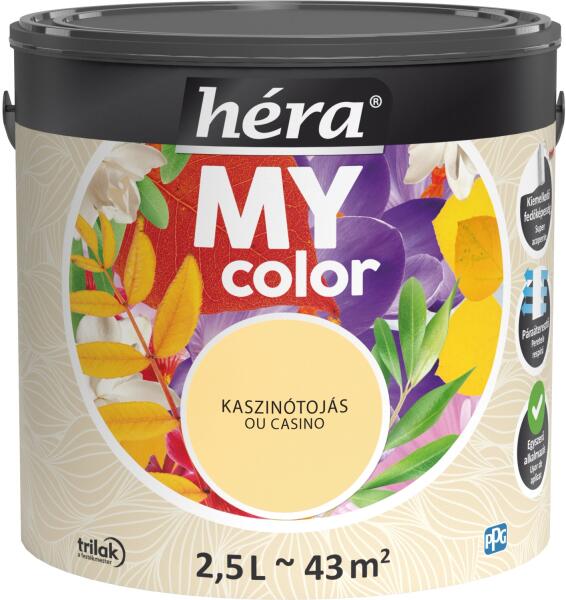 Kiváló minőségű, tartós matt festék beltéri falfelületek festésére. A Héra MyColor beltéri matt falfesték kiváló fedőképességű, mosható, pára- és legáteresztő bevonatot képez, színei pedig élénkek és tartósak. Egyszerű használatának és illatosított formulájának köszönhetően széles körben alkalmazható. Kiemelkedő fedőképesség Páraáteresztő Divatos színárnyalatok Illatosított