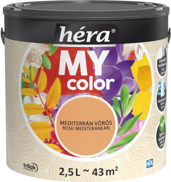Kiváló minőségű, tartós matt festék beltéri falfelületek festésére. A Héra MyColor beltéri matt falfesték kiváló fedőképességű, mosható, pára- és legáteresztő bevonatot képez, színei pedig élénkek és tartósak. Egyszerű használatának és illatosított formulájának köszönhetően széles körben alkalmazható. Kiemelkedő fedőképesség Páraáteresztő Divatos színárnyalatok Illatosított