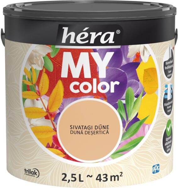 Kiváló minőségű, tartós matt festék beltéri falfelületek festésére. A Héra MyColor beltéri matt falfesték kiváló fedőképességű, mosható, pára- és legáteresztő bevonatot képez, színei pedig élénkek és tartósak. Egyszerű használatának és illatosított formulájának köszönhetően széles körben alkalmazható. Kiemelkedő fedőképesség Páraáteresztő Divatos színárnyalatok Illatosított