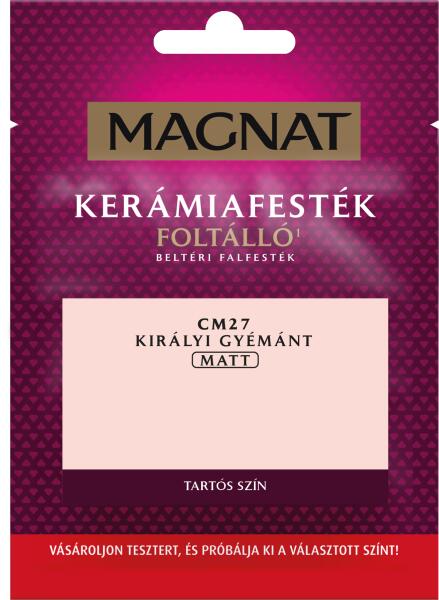 A MAGNAT KERÁMIAFESTÉK TESZTER eredeti festékszínminta, amelynek köszönhetően az adott szín, egy papírlapon vagy közvetlenül a falon, könnyen kiválasztható és ellenőrizhető. Az adott helyiség körülményei között alkalmazott festékfelfestés a színértékelés legmegfelelőbb formája. Ezenfelül, a pihentetett (28 nap utáni) festékfelfestés lehetőséget nyújt a helyiség körülményei közötti minőségellenőrzésre.