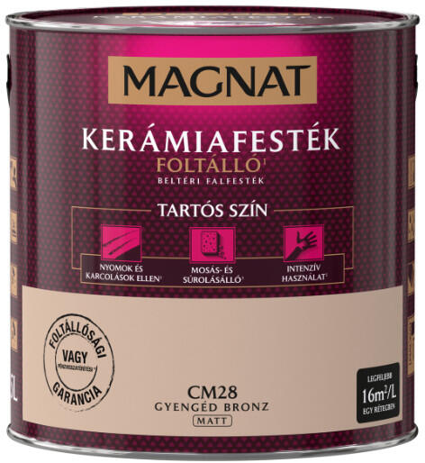 Magnat Kerámiafesték foltálló beltéri matt Magnat Kerámiafesték, mely ellenáll nyomoknak és karcolásoknak, lemosásnak és súrolásnak, és az intenzív használatnak.