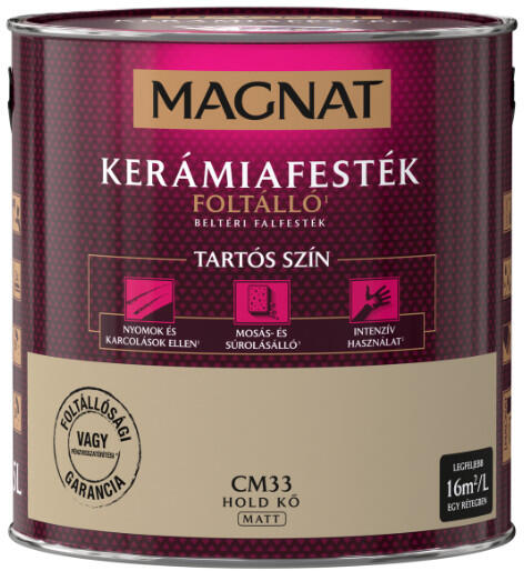 Magnat Kerámiafesték foltálló beltéri matt Magnat Kerámiafesték, mely ellenáll nyomoknak és karcolásoknak, lemosásnak és súrolásnak, és az intenzív használatnak.