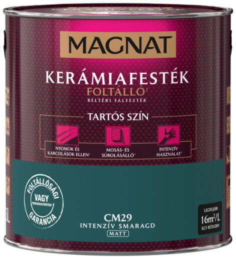 Magnat Kerámiafesték foltálló beltéri matt Magnat Kerámiafesték, mely ellenáll nyomoknak és karcolásoknak, lemosásnak és súrolásnak, és az intenzív használatnak.