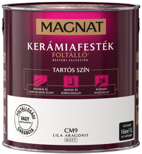 Magnat Kerámiafesték foltálló beltéri matt Magnat Kerámiafesték, mely ellenáll nyomoknak és karcolásoknak, lemosásnak és súrolásnak, és az intenzív használatnak.