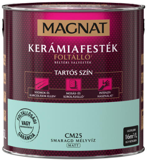 Magnat Kerámiafesték foltálló beltéri matt Magnat Kerámiafesték, mely ellenáll nyomoknak és karcolásoknak, lemosásnak és súrolásnak, és az intenzív használatnak.