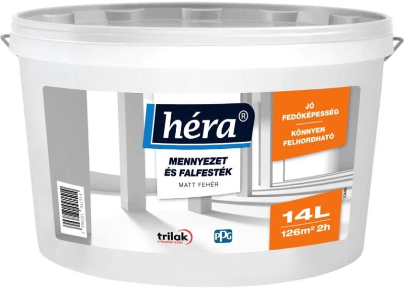 Héra Mennyezet- és falfesték könnyen felhordható, jó fedőképességgel és magas fehérséggel rendelkezik. A lég- és páraáteresztő bevonata nem akadályozza a fal természetes légzését. Matt bevonata kellemes megjelenést kölcsönöz a falnak. A termék bármilyen