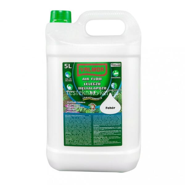 Alkalmazás: A VALMOR AIR FLOW Lélegző Mélyalapozó 1:1 oldószermentes, külés beltérben használható, kimagaslóan magas páraáteresztő képességgel rendelkező, környezetbarát termék. Nedvszívó felületek alapozására ajánljuk, ahol a felület „lélegzése fontos szempont. A VALMOR AIR FLOW Lélegző Beltéri Falfesték felhordása előtt a használata kifejezetten javasolt. Alkalmas minden ásványi eredetű felületre: szárító- felújító vakolatrendszerekre, normál vakolatra, gipszkartonra, mész-cement alapú felület simító anyagokra, valamint meszelt és nedvszívó képességgel bíró festett felületekre. Alkalmazása során a port leköti, behatol a felület pórusaiba, így erős tapadóképes alapfelületet biztosít. Használatával megelőzhető a felületek esetleges festési foltosodása.